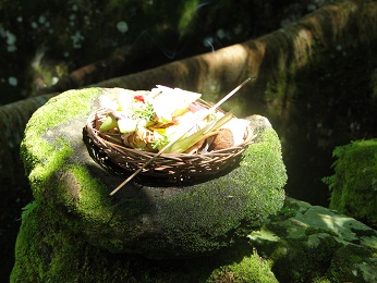The actual cave had an ornate entrance that looked more like a scary face than an elephant. There were more amazingly intricate engravings in the rocks that led the way into a small T shaped tunnels that had alcoves where the usual offerings had been placed. The little bamboo leaf baskets were filled with lovely scents from flower petals, incense and small food offerings to give thanks for the food we have.
