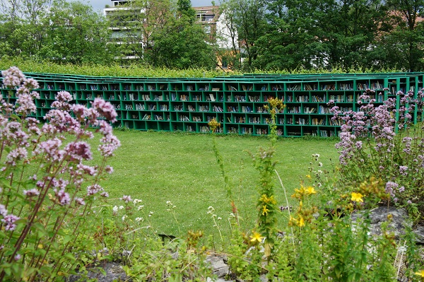 “Bartolini built an open air bookcase in the vineyard at St Peter’s Abbey, an oasis of greenery and tranquillity in the centre of Ghent. Visitors can borrow, buy or exchange second hand books in the symbolic shadow of the book tower. According to Bartolini, books too can broaden the mind, just like good wine.”