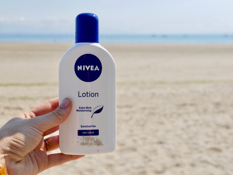Once you’ve applied it you can’t even tell you’ve got it on so you don’t have that horrible sticky feeling. It’s also great for kids because it’s quick to apply and if you’re on the beach you don’t get really sandy. We also use a cheap one from Aldi but I swear it’s an actual sand magnet.