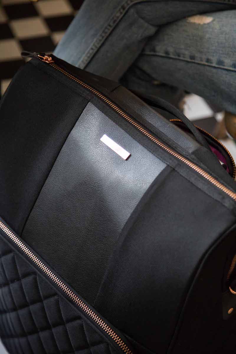 Another use for this top handbag compartment is to use it for your toiletries and tech you’ll need to remove from you suitcase at airport security.