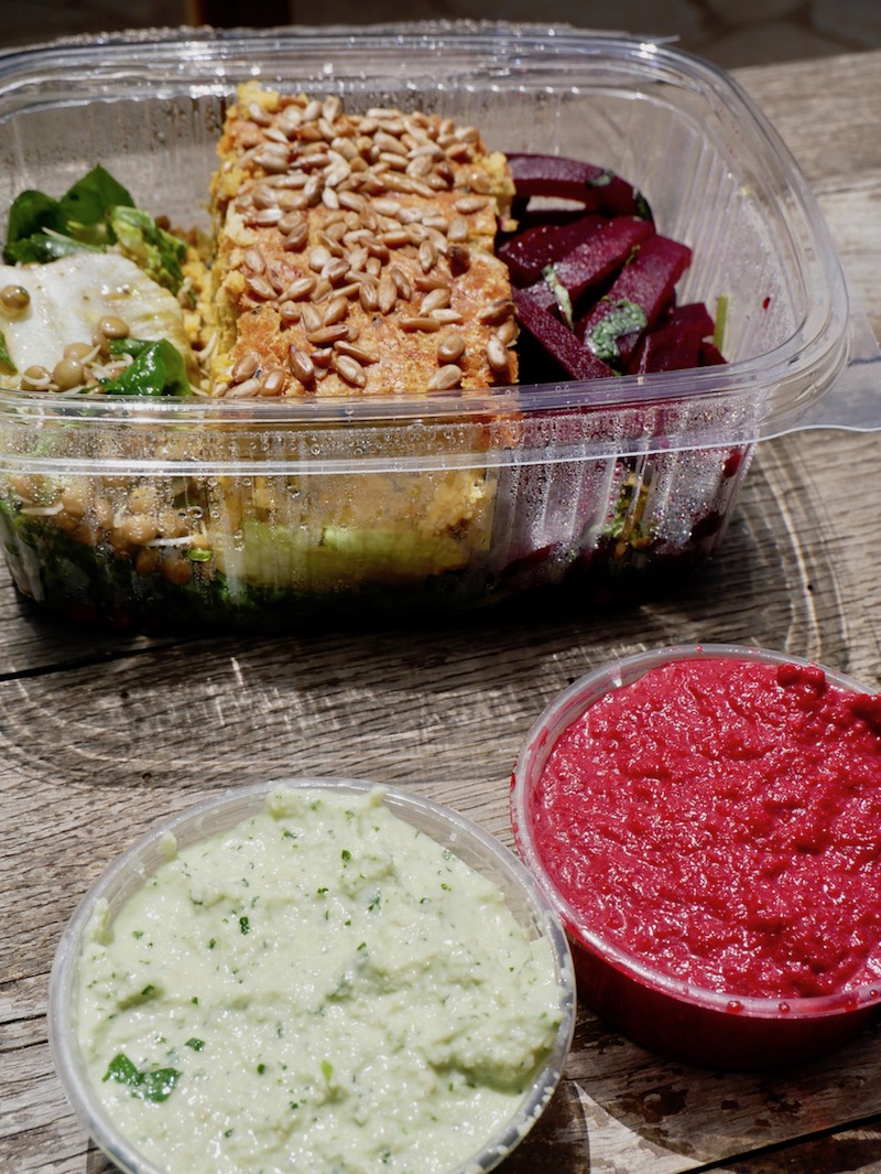 Lunch is often served in a takeout box and is a deliciously colourful mix of tasty veg, seeds and grains served with bright dips. You almost forget you’re eating the healthiest vegan food you could imagine. Well, until you’ve finished and there’s a gaping hole in your life where desert should be!