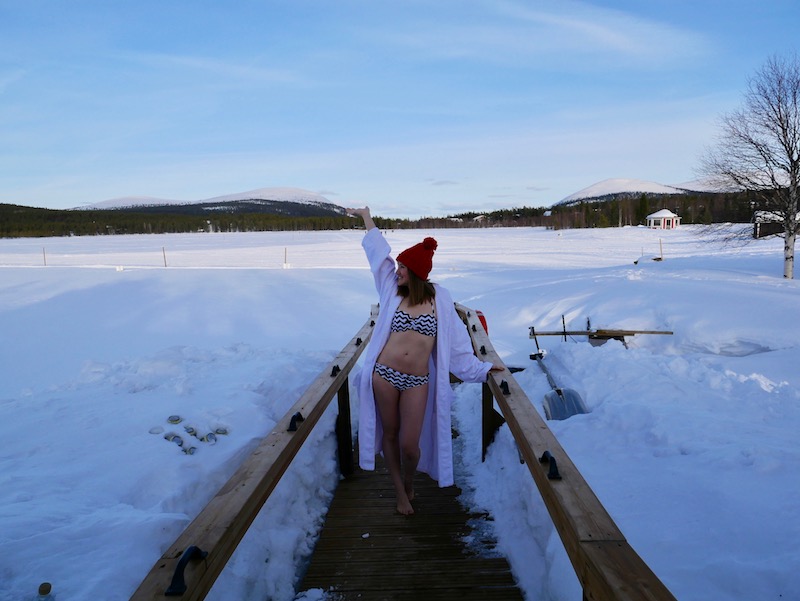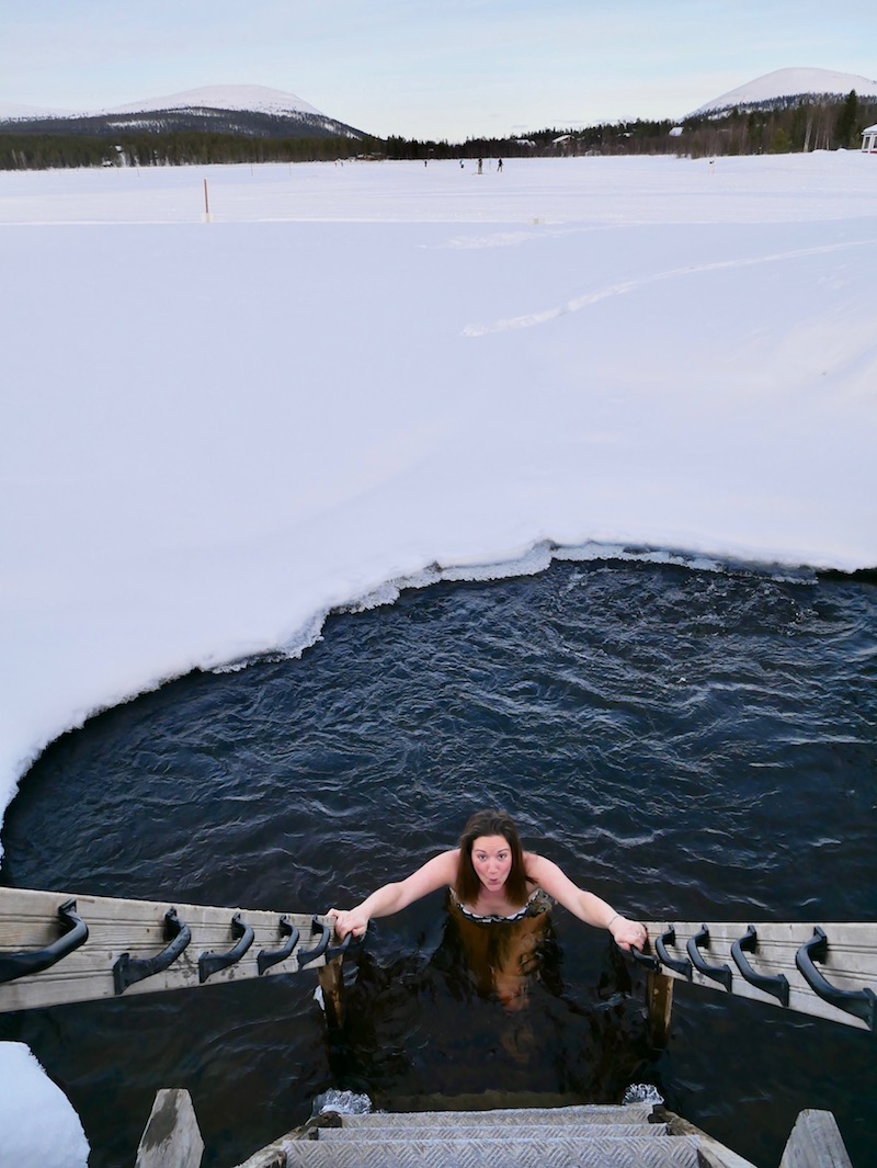 This was, without a doubt, the highlight of my trip to Finnish Lapland, which is surprising because it’s the part I was actually dreading. It was such a unique experience and is something I’ll remember forever. Dipping into the icy waters of the lake was a terrifying thought, especially after being so hot in the sauna, but it was so exhilarating and made me feel alive.