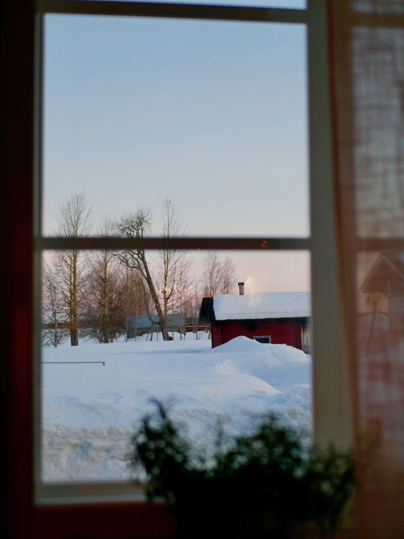 Before making your way back to Kittilä airport, have a gorgeous buffet lunch at Hotel Levi Panorama then enjoy a hot drink at the scenic Cafe Panorama Laavu, complete with a roaring open fire and views over the stunning winter scene below. This place was the most incredible little cafe and may take some searching to find it and you’ll probably need to ask some locals for some help but it’ll be well worth it. This tiny cafe has an open fire in the middle where a blackened kettle gently steams over the flames. Tiny stools surround the fire and face the windows so you can look out over the snowy view. It’s beautiful!