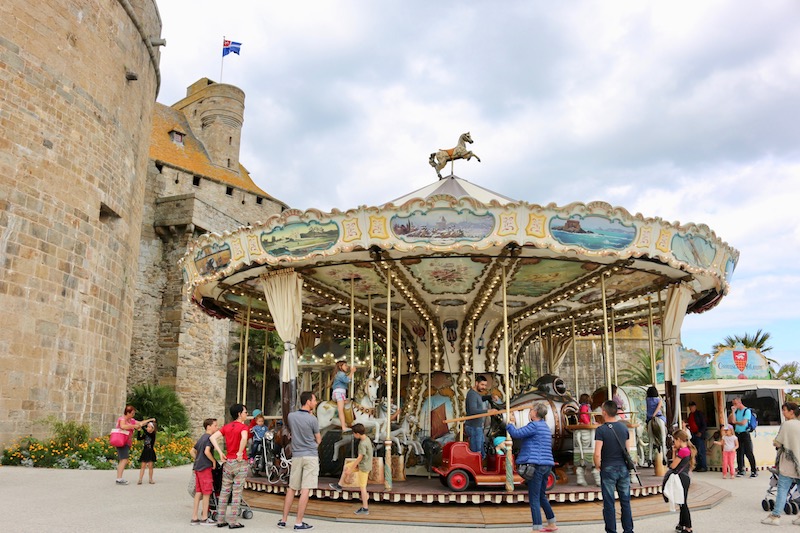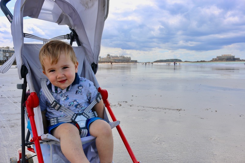 On our fourth day we took a short drive from Domaine des Ormes to the walled town of St Malo. Tall granite walls surround the old town and give it a really charming and historical feel. We bumped along the cobbles within the walls and browsed the little boutiques for as long as George’s patience would last. It wasn’t long before he wanted to escape from his pushchair so we walked through the town and to the beach.