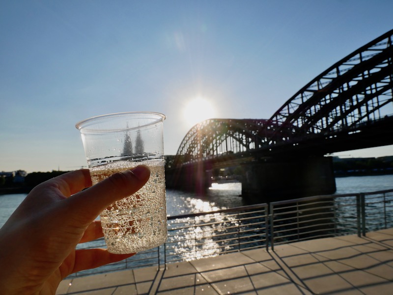 On a nice evening, there’s nowhere better to enjoy a memorable dinner than on the steps along the bank of the Rhine, across the Hohenzollern Bridge and its thousands of love locks.
