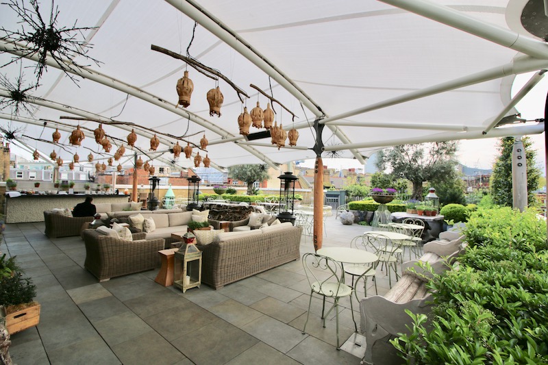 Before I left for the first of my radio interviews I took a proper look around the hotel. I love hotels early in the morning when they’re quiet and serene. I love seeing the staff bustle around, serving steaming cups of coffee to sleepy guests. I like watching my fellow guests start their day as I guess what they might be doing that day. I headed up to the rood terrace where I could enjoy the views out over London. It was a strange feeling to be looking out over the city in such a peaceful location. I was surrounded by plants and a vegetable garden so felt a million miles from the busy streets of Soho.
