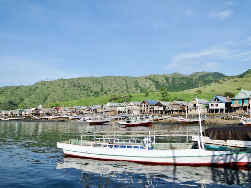 A much posher tour boat pulled up alongside us for the night and we were very jealous to see their cold beers. Jimmy must have seen our envious faces and, with a little help from the translator from the posh boat, he told us he could take us to the village in Komodo to buy some. We could see the village from where we were and could see a row of about 30 wooden houses on stilts, so I wasn’t really convinced that they would sell beer but we went for it anyway.