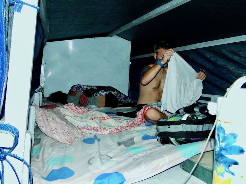 We slept on the deck of our boat on squidgy mats and under our sarongs. I thought it would be awful, especially with all the cockroaches scurrying around, but with the gentle swaying and a few too many arak wines I was sleeping like a baby and awoke to a gorgeous sunrise over perfectly still water.