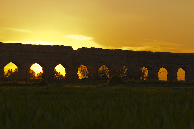 The aqueducts create an impressive silhouette as the sun slides to meet the horizon so this is a top spot to watch the sunset in Rome.
