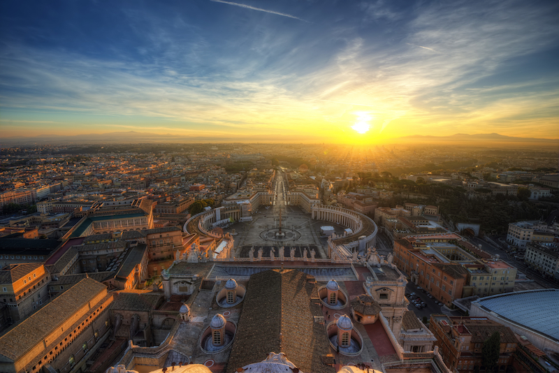 Imagine standing high above the impressive St. Peter’s Piazza looking out over the tall colonnade designed to symbolise embracing the citizens of Rome.
