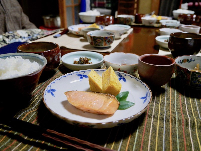 We were greeted with a breakfast feast of rice and salmon and 6-7 tiny side dishes. We ate it at a low table with our legs crossed beneath but this table was the best. It had a heated table cloth covering it that draped over our legs like a heated blanket. I could have sat there all day tucking into Japanese food and enjoying the cosy atmosphere in the house.