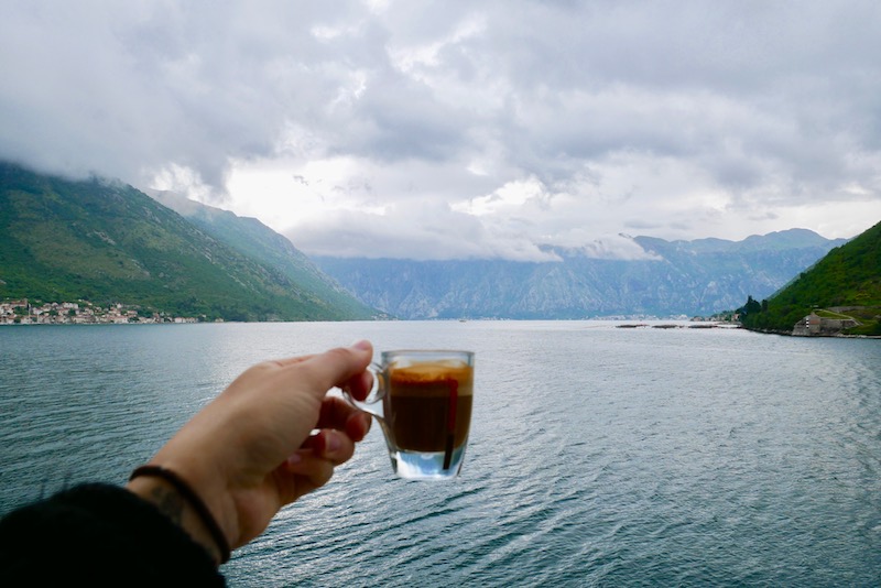 My first stop was Verige 65, a stunning bar/restaurant with views to the narrowest part of the Bay of Kotor. It’s a modern and stylish bar and popular with tourists thanks to the incredible views. Cruise ships pass the restaurant and come so close to the restaurant that you feel like you can reach out and touch them. There weren’t any ships passing during my visit but it was a gorgeous place to enjoy the scenery. Verige 65 might be a touristy place but I highly recommend a stop here!
