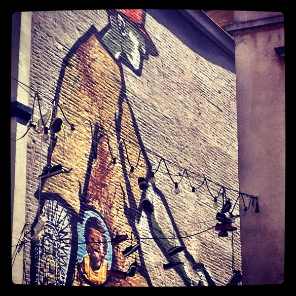 Street art is everywhere and you can just about make out some trainers hanging from the wires. These were part of the TRACK exhibition which saw artwork placed all around the city.