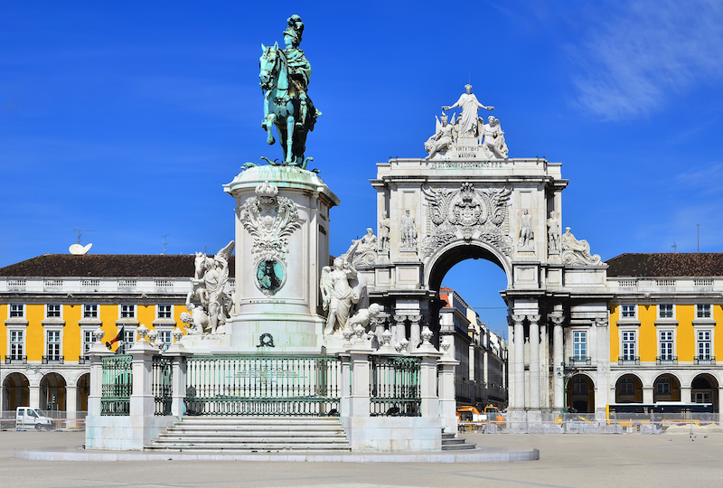 Praça do Comércio is Lisbon’s largest city square and was originally built as a welcoming point for visitors arriving from the Tagus River. The beautiful square is lined on two sides with porticoes. On the third side is Rua Augusta arch which was built to commemorate the city’s reconstruction after the 1755 earthquake. The arch, which is adorned with statues, is over 100-foot high and leads through to Lisbon’s main pedestrian street. Daffodil yellow paintwork each side of the arch contrasts nicely with the city’s yellow trams which stop opposite making for a great Instagram shot. The square is usually packed so you’ll need to get there early for the best shots.