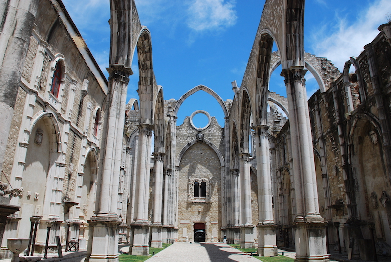 Just by the top of Santa Justa Elevator you’ll find the atmospheric Carmo Convent. It’s the shell of a huge church that was destroyed by the 1755 earthquake but it’s a pretty impressive shell. Looking down the nave you’ll get a stunning perspective of arches and pillars reaching up into a cobalt blue sky (on a good day). Around sunset the white stonework takes on a gorgeous golden glow and makes a beautiful backdrop for a selfie or two.