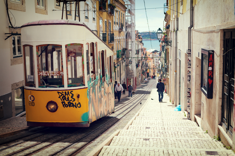 This is probably Lisbon’s most photographed street. It’s where the Bica funicular, a national monument, has trundled up and down the steepest of streets since 1892. The street is lined with small 17th and 18th century buildings with flower-filled verandas. Go to the top to shoot the two sunshine yellow funiculars as they pass each other. The Tagus River in the background makes the perfect backdrop.