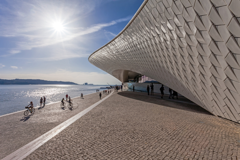 MAAT is a repurposed power station on the banks of the Tagus River in Belém which opened in 2016. The shell-shaped contemporary building has beautiful wave-like lines and gentle arches. Visitors can walk over the curved roof and down an outside staircase that descends into the water. Glazed tiles on the façade reflect water, light and shadow. Go in the golden hour when the setting sun turns the building gold for ‘that shot’.