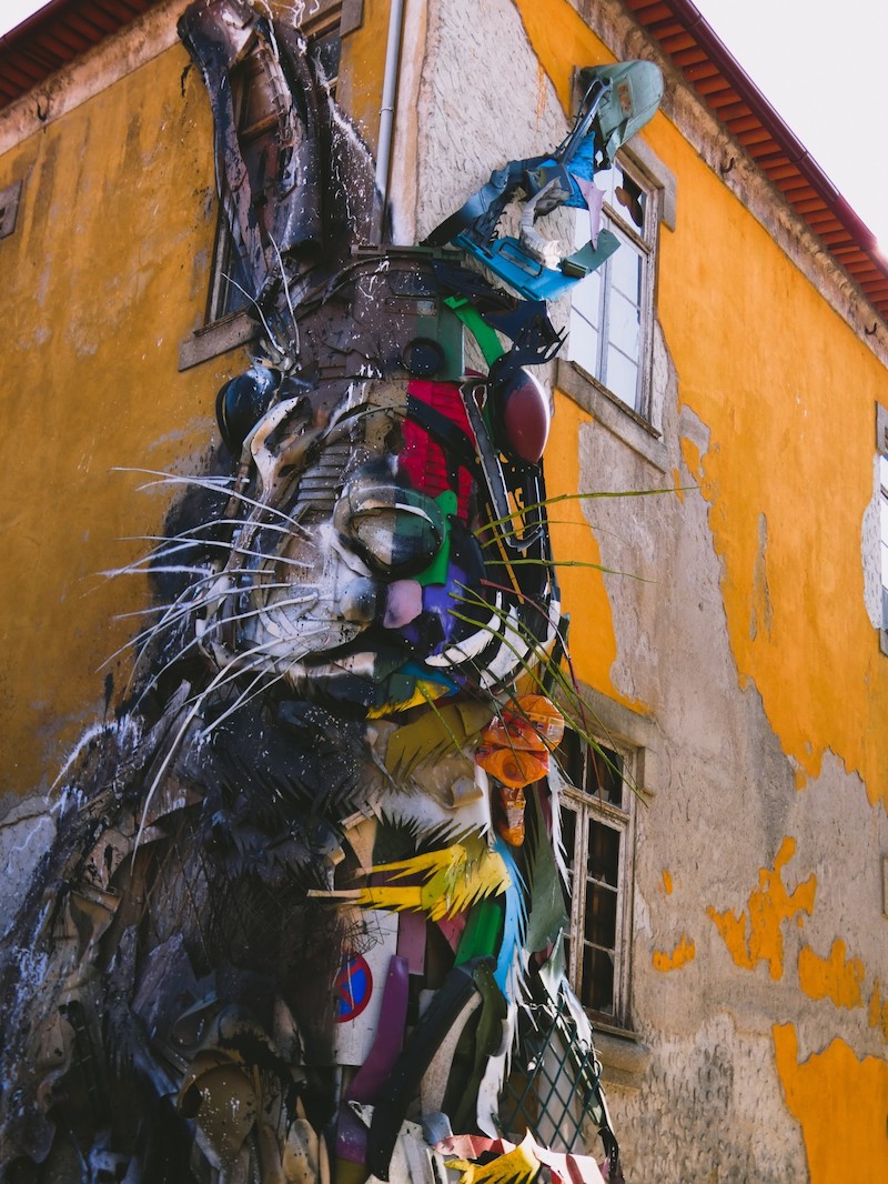 Bordalo II is widely known for creating street art from trash and plastic waste he finds on the street. Many of his creations are of animals and come as a stark reminder of the impact plastic and non-biodegradable items can have on surrounding wildlife and habitat. As Bordalo himself says “one man’s trash is another man’s treasure.”