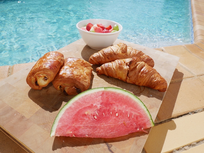 I put the kettle on as I try to ignore the mess in the kitchen from last night’s BBQ feast. Salmon, prawns, burgers, chicken and plenty of G&Ts with tangy lemon were enjoyed on the terrace overlooking the pool.