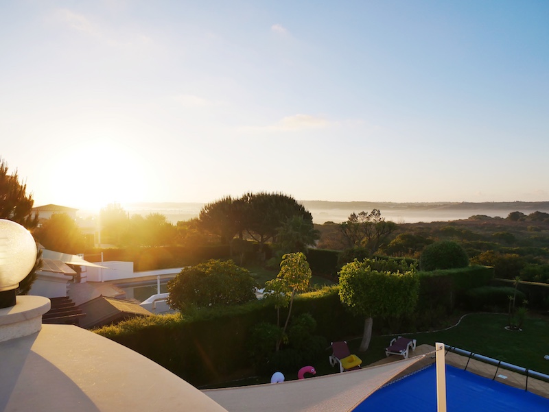 Through the floor to ceiling windows I can see straight out across the Portuguese countryside. The sky is beginning to lighten and the misty clouds roll across the horizon. The garden is dewy and cool but I can’t resist standing outside for a few minutes to take it all in.