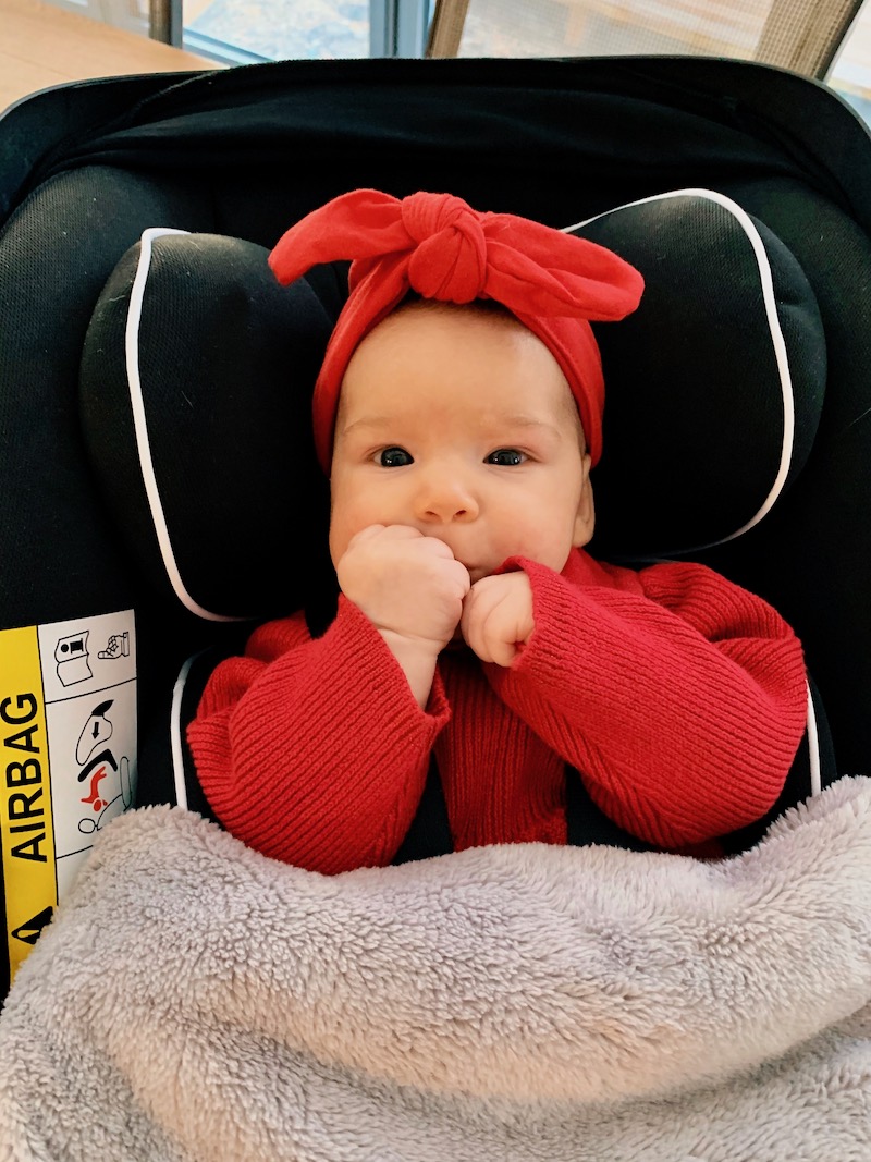 The car seat is fab and Alba is super content and snug in there. It isn’t too heavy so it’s easy to carry in and out of the house while Alba is still in the car seat. It lasts from birth until about 15 months and has a newborn insert for little babies (Alba is 4 months and I will probably remove the insert in the next few weeks).