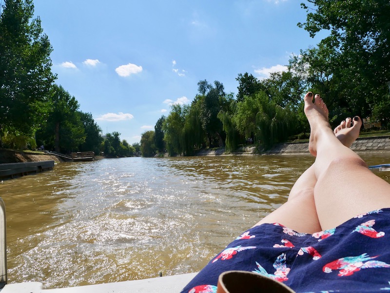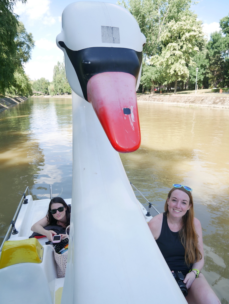 We stayed for a couple of hours before jumping in a taxi back into the city centre to have lunch before hiring a pedalo on the river. This was so much fun and I felt like it was something that sets Timisoara apart from lots of other cities. It was so nice to enjoy the sunshine, pull over our pedalo for a drink and just enjoy this super slow pace – and it was pretty slow because it was so hot!