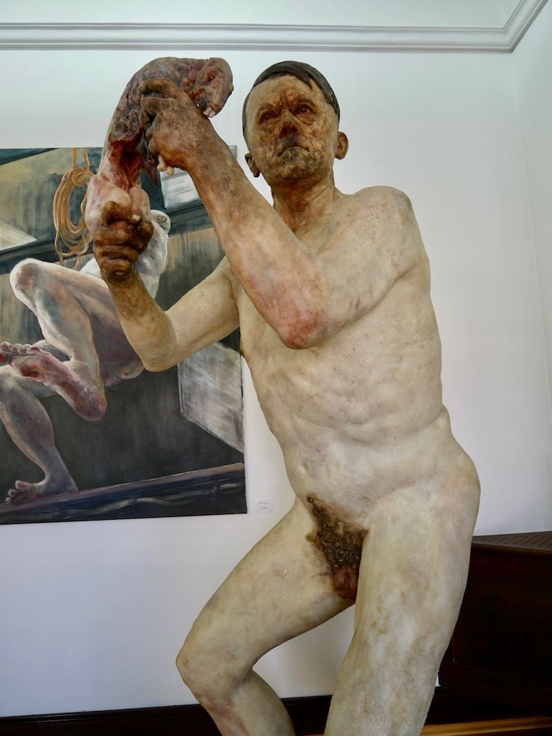 One statue is different to the others in the exhibition and shows Hitler holding a slaughtered rabbit and represents the way he slaughtered Jewish people and they were as powerless and vulnerable as rabbits.