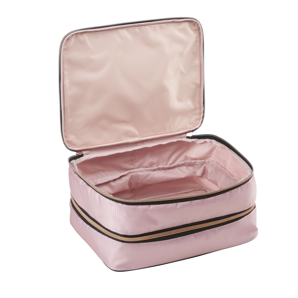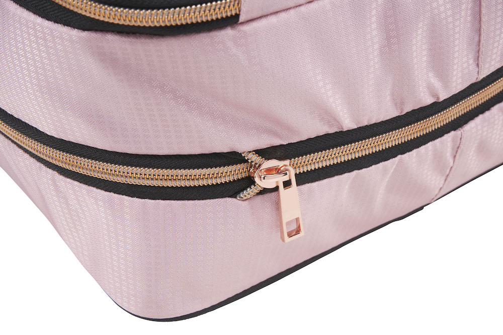 The packing cube fits neatly inside the backpack so you get the very most out of the space. It now also matches nicely with the updated version of the suitcase which has a light pink interior (the older versions of the suitcase had a hot pink interior lining)
