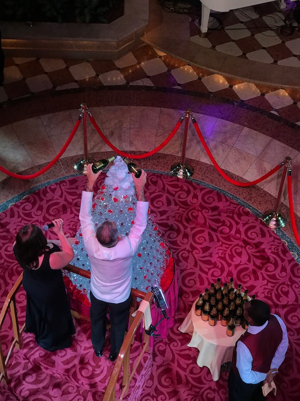 For me, the ship’s formal evenings were one of things I was looking forward to the most on the cruise as I rarely get the opportunity to get glammed up back at home or on my usual travels. It was lovely seeing the guys in their suits and the girls in their dresses and heels, sipping champagne in the grand central atrium.