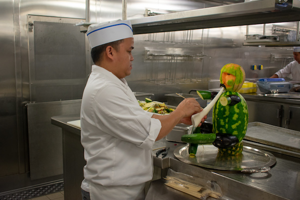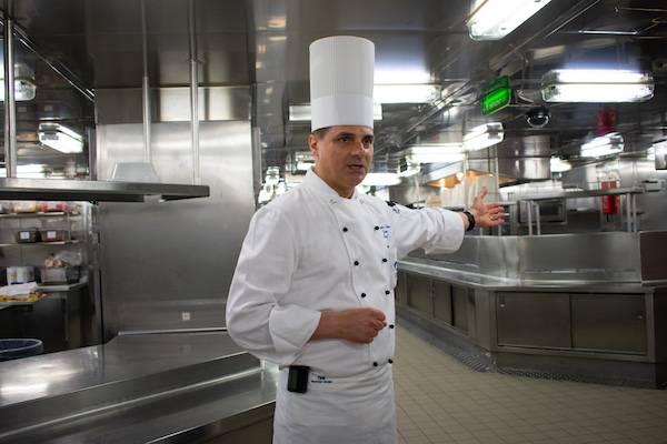 In the Galley, we met head chef Salvatore who took us on a tour of one of the ships two large kitchens and introduced us to a few members of his impressive staff, made up of 230 chefs and cooks. I’m not sure whether I’d personally want his job but it was certainly interesting to see both the organisation and passion which goes into producing so much quality food on a daily basis.