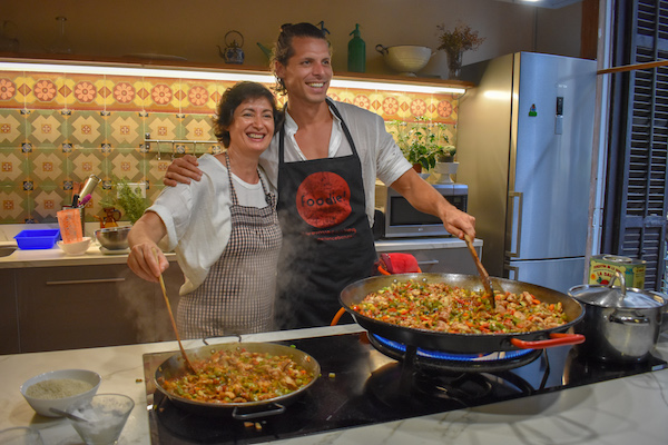 Our main activity of the afternoon in Barcelona was a cooking class at cookery school Foodie Experience Barcelona, run by local sisters Angeles and Carmen. We spent a fantastic couple of hours learning all about catalan cuisine while trying our hand at making spanish omelette, tomato bread, paella, catalan cream dessert (similar to crème brulée) and sangria. I think it was safe to say that we were all pro chefs by the end of the class – or maybe that was just the sangria talking!