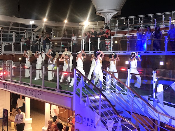 Being the last night of our 7 day Mediterranean Cruise, once back on board we headed up to the top deck to celebrate in style at the Princess Cruises Love Boat Disco Deck Party. The party was themed around the 1980’s American TV comedy set on a Princess Cruises ship and promised a “return to the golden era of disco”. And it certainly didn’t disappoint!