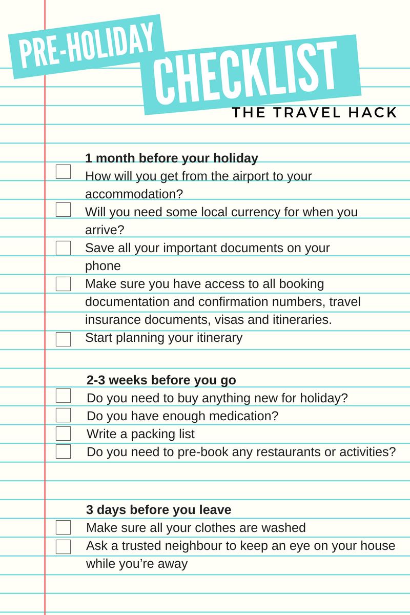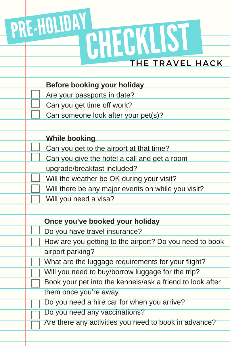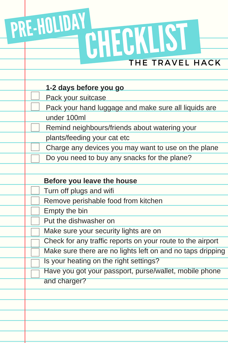 So I’ve created this pre-holiday check-list so you tick the boxes as you organise and book every element of your holiday.