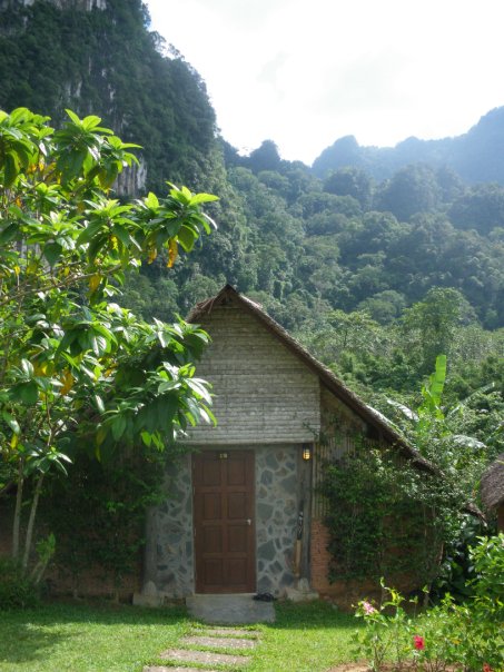 Cliff and River Jungle Resort is located in the heart of the rainforest in Khao Sok National Park, Southern Thailand. It’s surrounded by limestone cliffs that tower so high it’s a genuine strain on your neck and there is nothing but lush greenness all around. There are gorgeous little huts dotted around the immaculately kept gardens and miles and miles of forest filled with all kinds of wildlife.