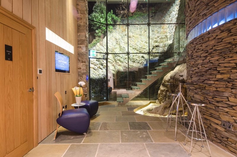 Coes Faen has the largest all-glass ceiling in Great Britain, a 30 acre private woodland garden that tumbles into the atrium, a cascading natural water feature, bespoke bedrooms, each with their own spa feature (some including one room with a private outside hot tub), terrific food served in a relaxed and comfortable atmosphere and it even facilities to bring your dog or horse.