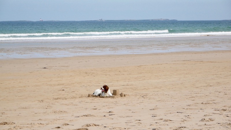 A white sandy beach framed by wild grass and crashing waves stretched out for miles. A mystical fog hung over the sea from the spray of the waves and a few brave kids were jumping in the water. Dogs scurried up and down the sand in that manic, excitable way like they’re the happiest animals alive. I always imaging them to be shouting to each other, ‘I’m on the beach! Oh my god, this is so much fun. I’m on the beach! Waves! Sand! Sea! Footballs everywhere! Arggh!’ This is what my dog would be saying anyway and if was socially acceptable I’d probably do something similar!