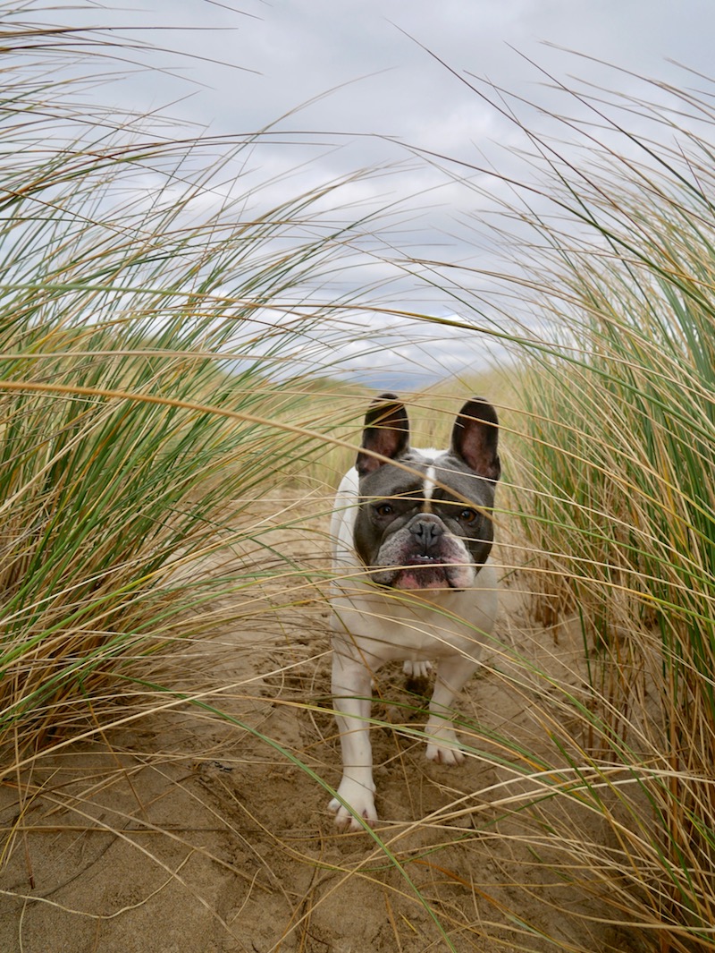 Louie chased the wind up onto the grassy sand dunes that rolled and peaked as far as I could see. The prickly marram grass blanketed the dramatic dunes but we waded through the vegetation to see this gorgeous, Nordic looking cottage.