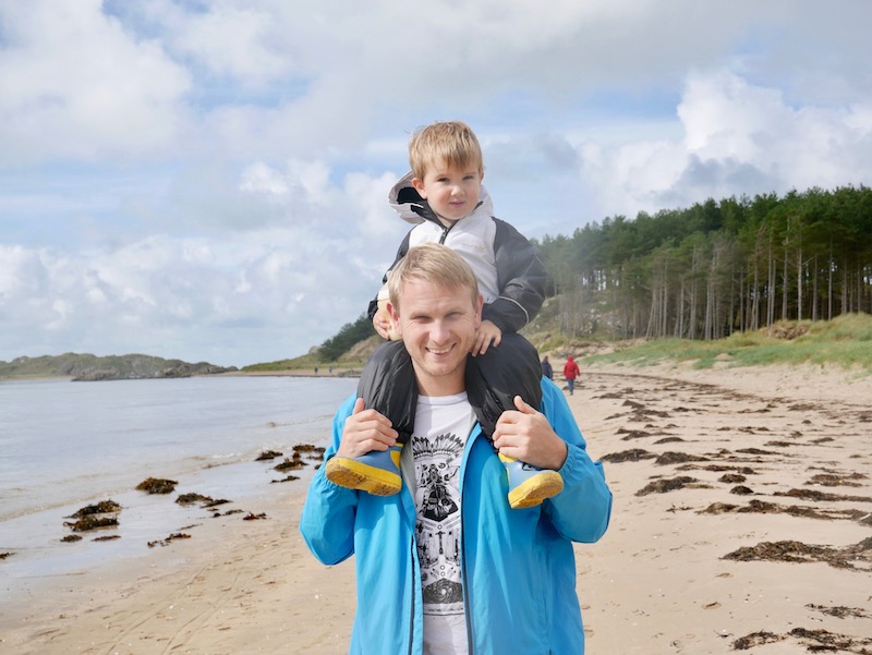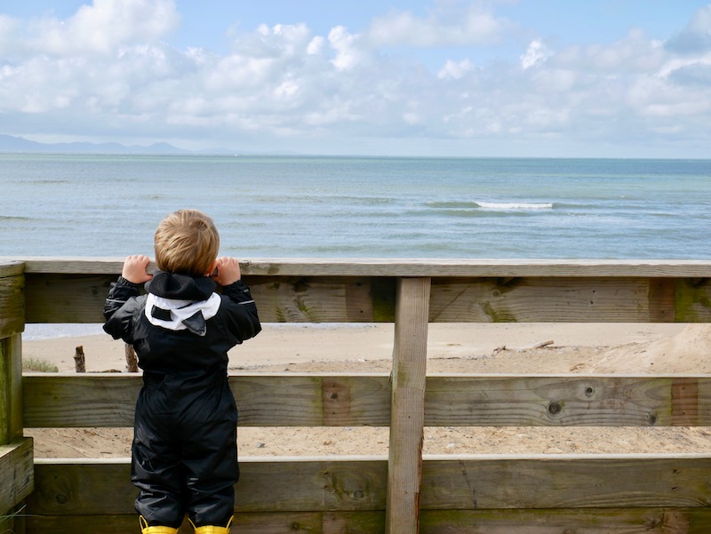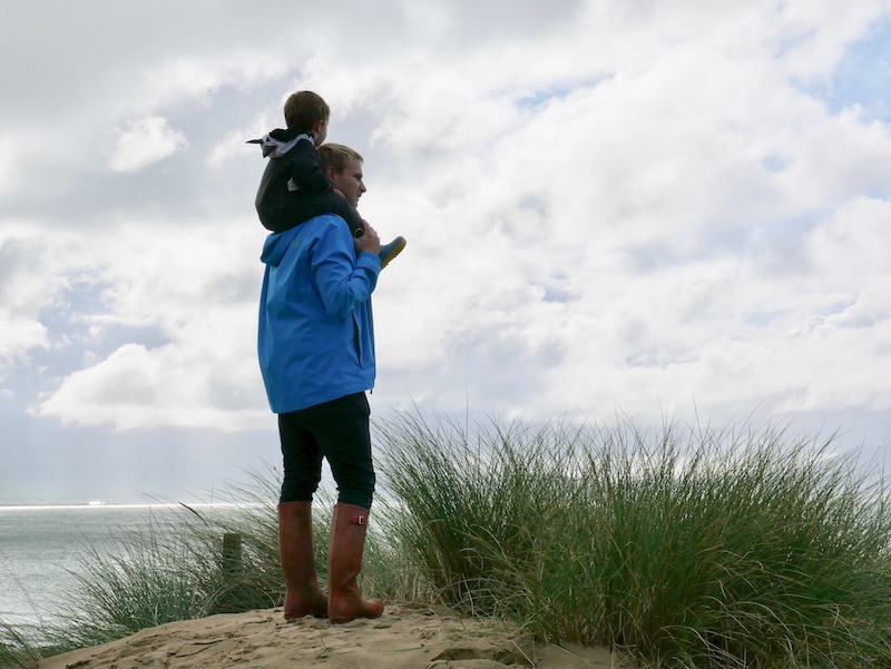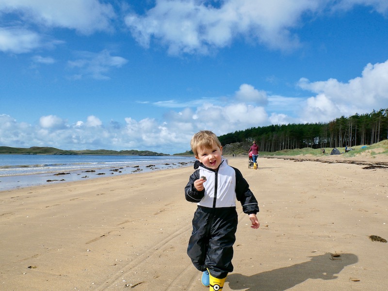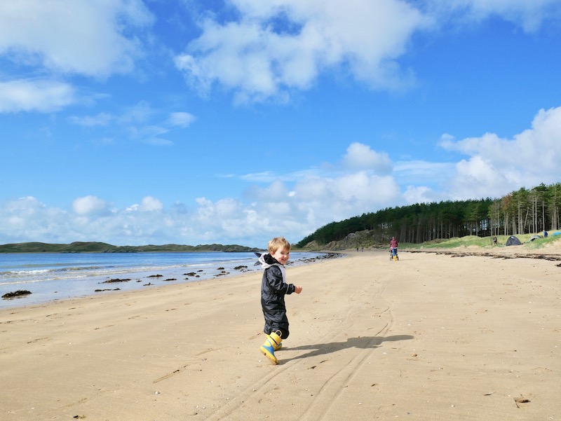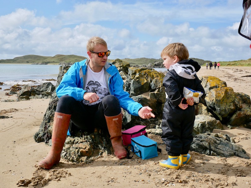 I love this picture as it sums up everything from our day: A gorgeous beach but we were still dressed in wellies and raincoats (because it was Wales!) Beach picnics, sandy bums and George trying to hide a packet of Wotsits from Sam!
