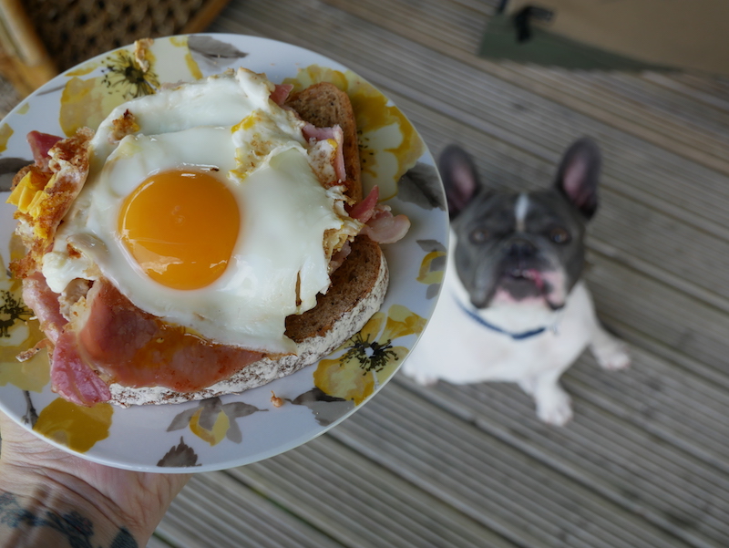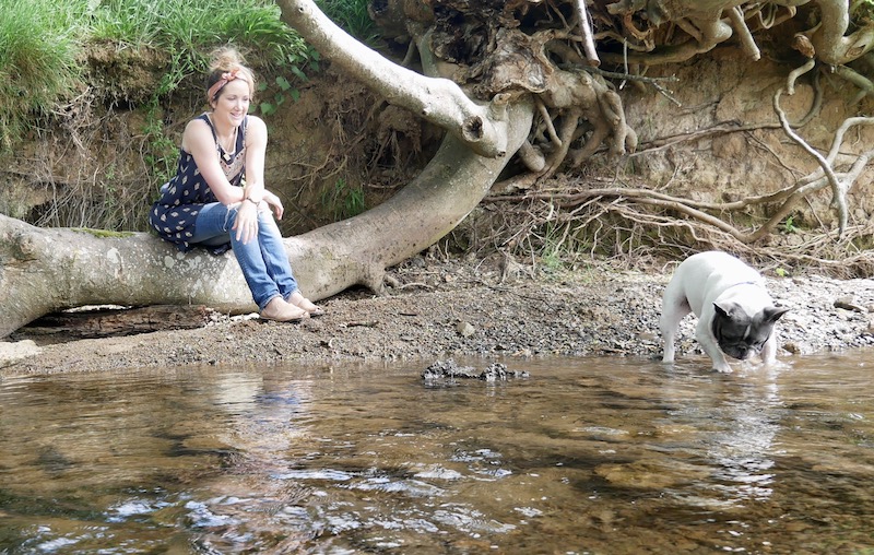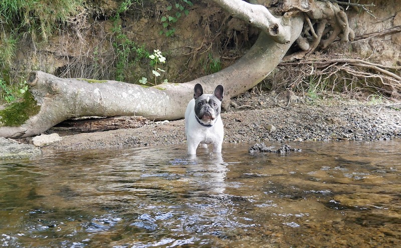 I cooked a big breakfast of bacon and eggs before taking a final stroll around the fields. Louie splashed excitedly in the stream, dragging sticks and branches to my feet so I’d throw them into the water for him.