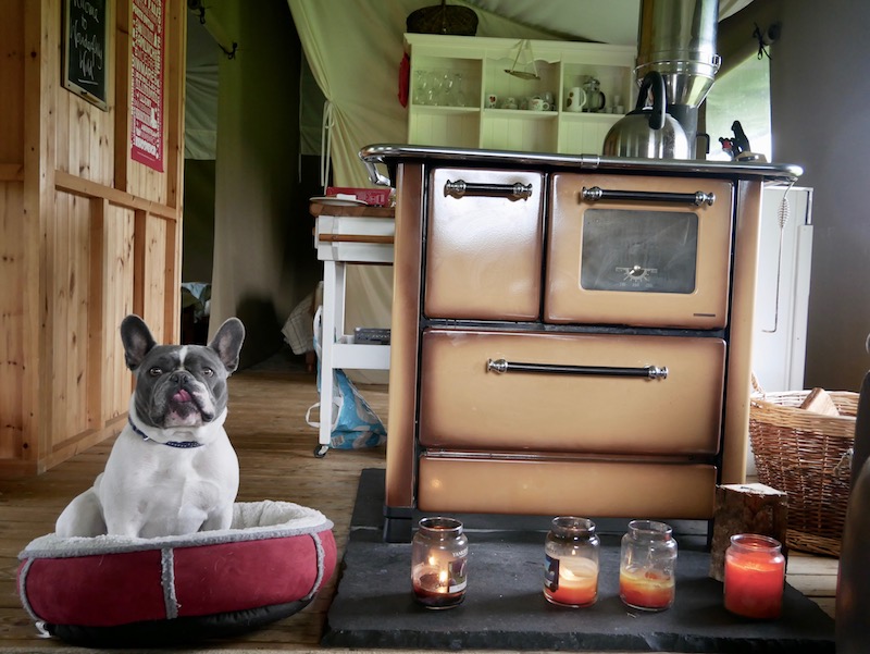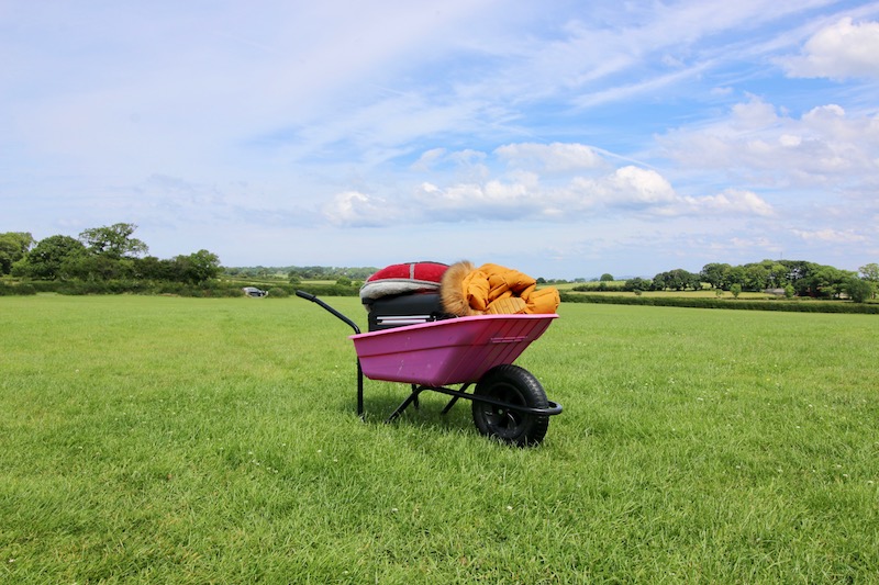 I’d just pulled into the parking area when Victoria arrived to greet me and show me to my lodge. We grabbed a colourful wheelbarrow and loaded it with my bags made our way across the field with my dog, Louie, happily trotting at my heels.