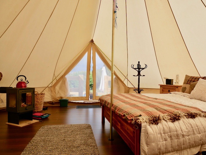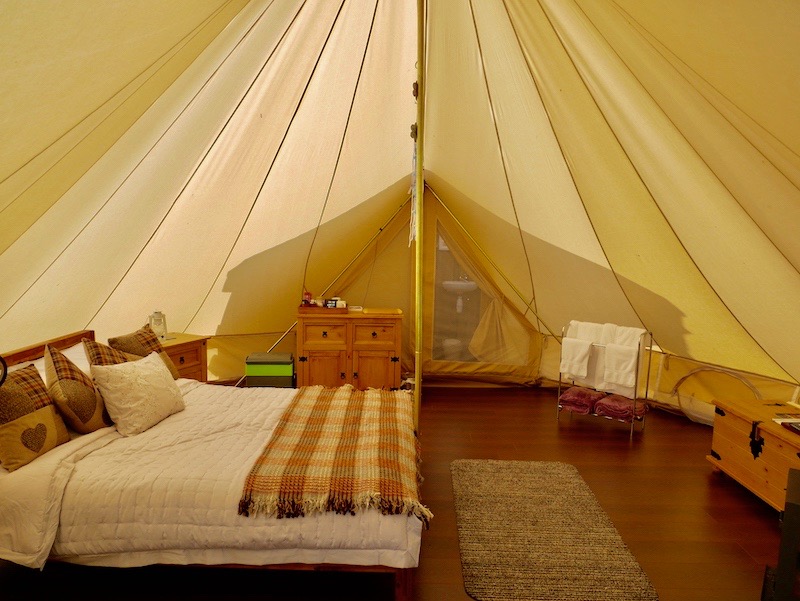 Glampotel claims to be the world’s first eco-tourism glamping hotel ‘chain’ and this is the first to open in Wales. Founded by Paul Woolnough, Glampotel combines the simplicity and joy of sleeping under canvas with the little luxuries of a boutique hotel. They refer to these gorgeous tents as Canvas Cottages and, once inside, they do feel much more like a spacious and luxurious hotel room than a tent.