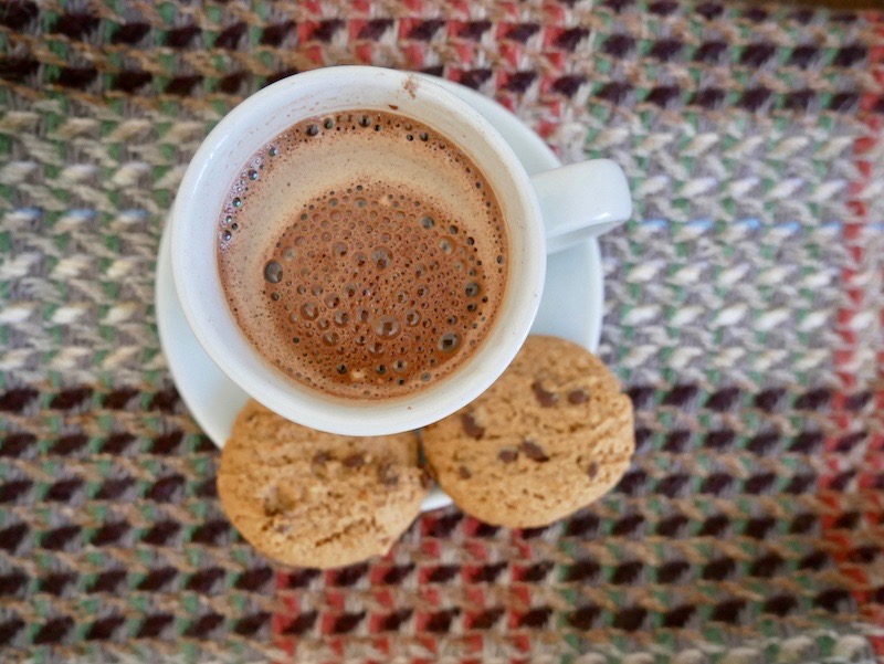 The kettle ontop of the stove began to bubble and whistle, signalling it was time for a big mug of hot chocolate. The type with marshmallows floating on top and needs to be eaten with a spoon rather than drank.