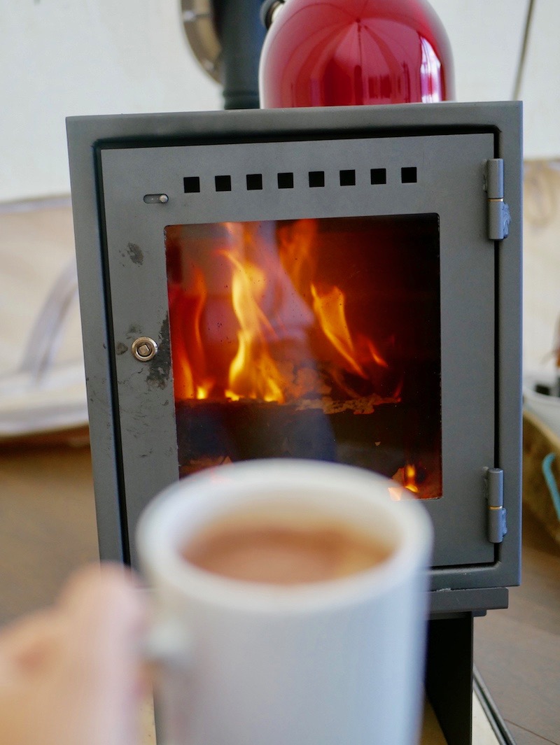 There’s something so instinctively mesmerising about a fire, especially one in a glass box like Glampotel’s. I sat cross legged on the floor, watching it like a child watches TV, enchanted by the flames that seemed so gentle and soft within their glass case.